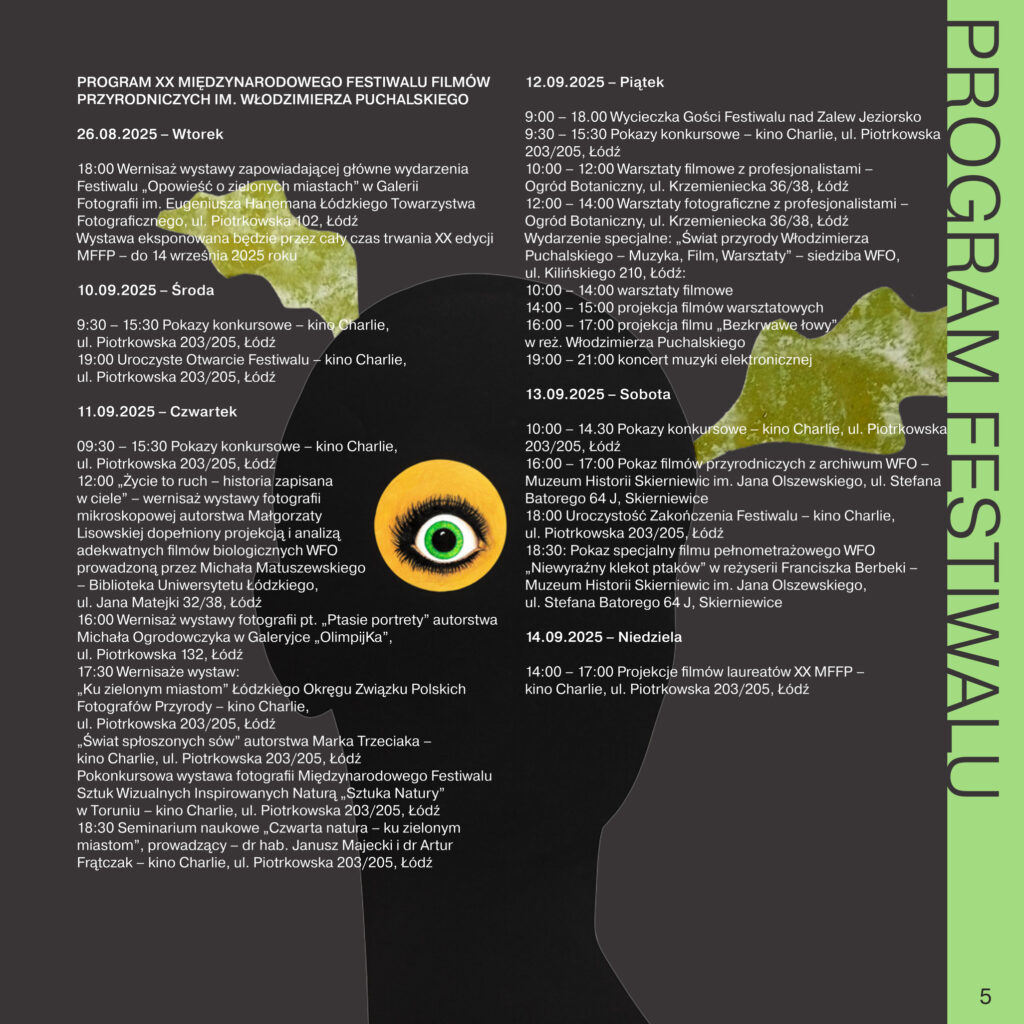 PROGRAM XX edycji Międzynarodowego Festiwalu Filmów Przyrodniczych im. Włodzimierza Puchalskiego! sie 26, 2025