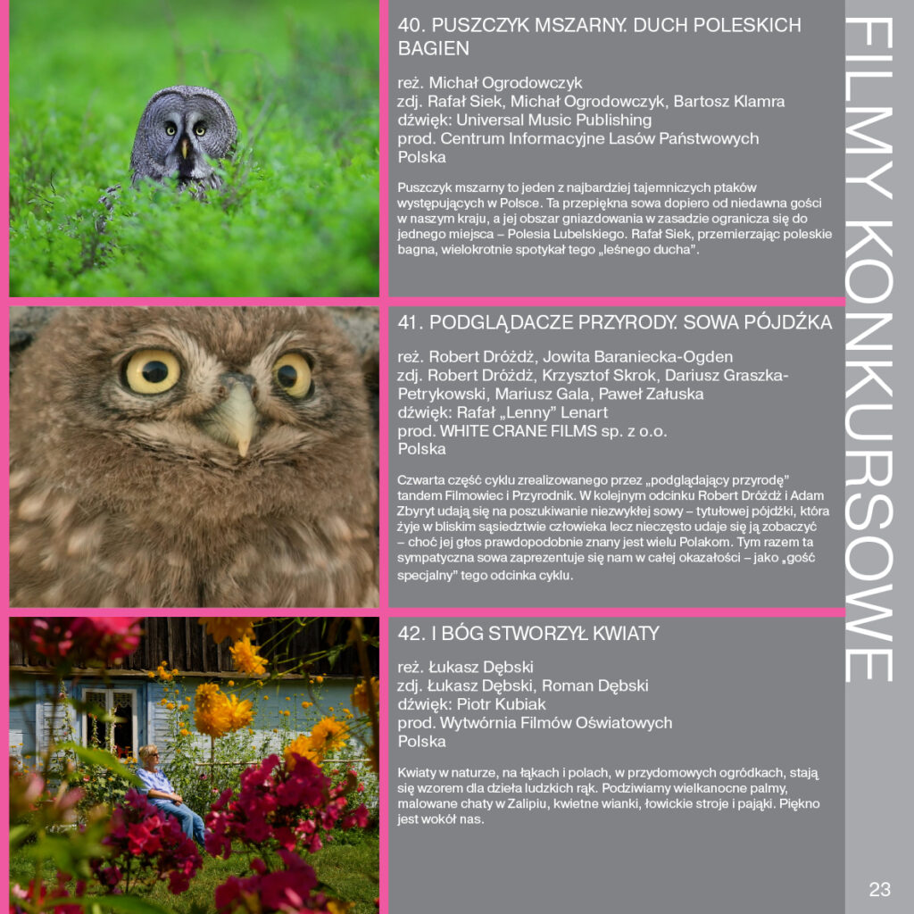 W tym roku prezentujemy aż 44 filmy konkursowe, które przeniosą Was w fascynujący świat natury i przyrody.